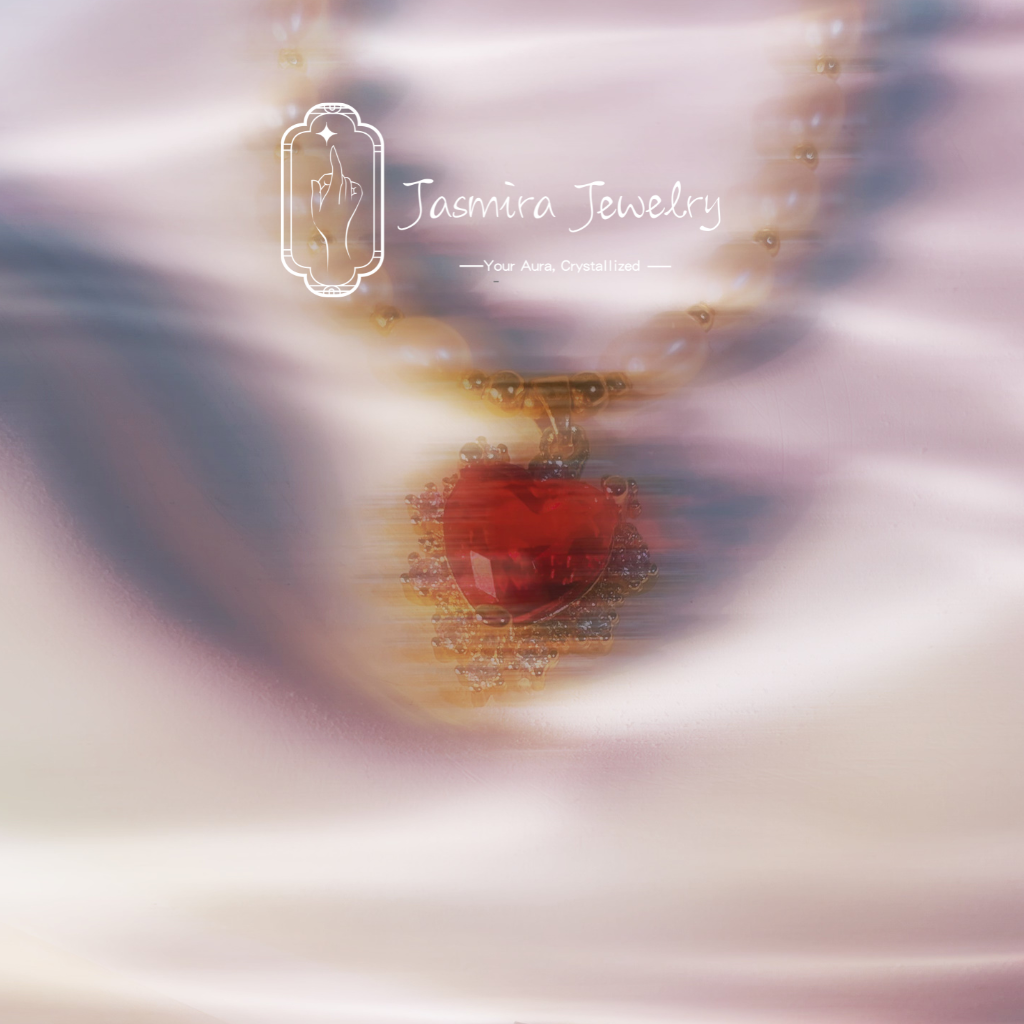 nspired by love, this necklace features oval-shaped natural freshwater pearls, each as lustrous as a lover's whisper, strung together to weave a tale of tender affection. At its heart lies a heart-shaped red zircon, blazing with passionate love, encircled by white star-shaped zircons that symbolize eternal guardianship—like stars orbiting a cherished heart. The soft elegance of the pearls contrasts with the zircon's radiant sparkle, mirroring the gentle warmth and fiery passion of love. On the sleek chain, this interplay of light and texture captures the essence of romance, making it a heartfelt symbol to wear close to the heart—a perfect token to declare your love.