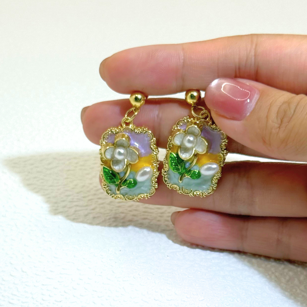 Inspired by Monet's garden, these earrings capture the delicate charm of white evening primroses on the ear. The oil-drop craftsmanship outlines the petals' intricate textures, while the candy-colored tones infuse the flowers with the sweet vitality of summer. Symbolizing "silent love" and "unrestrained heart," the evening primrose embodies both the fusion of art and nature and a romantic declaration of freedom unique to summer when worn.